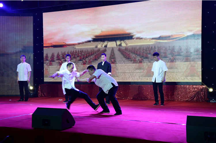 為了給天信二十周年生日獻禮,天信儀表集團文藝隊成員給各位嘉賓和員工們準備了一臺堪稱專業(yè)級的文藝晚會,12個內(nèi)容豐富、形式新穎的精彩節(jié)目,竟全是員工們利用業(yè)余時間精心編排和創(chuàng)作的。在所有人的期待中,一曲震憾人心的鼓舞敲響了本場晚會的第一音符,激情四射、強勁有力的鼓舞,一開場便博得了滿堂彩,給觀眾留下了深刻而難忘的印象。抒情高亢的獨唱、合唱表演,將觀眾帶進了另一個如癡如醉的美好世界,給人耳目一新的視聽震撼。婀娜歡快的印度舞蹈讓臺下觀眾驚訝不已,原創(chuàng)小品《天信新聞播報》令觀眾開懷大笑。聲情并茂的詩朗誦、清新深情的吉他彈唱、剛勁有力的武術(shù)表演、優(yōu)雅性感的旗袍走秀、員工子女才藝表演,每一個節(jié)目都深深地感染著現(xiàn)場的每一個人,整臺文藝晚會節(jié)奏明快、環(huán)節(jié)緊扣、場上場下互動熱烈、嘉賓情緒高漲,雄渾高亢的歌聲、細膩柔美的舞蹈、繽紛亮麗的燈光、激情澎湃的畫面,感染著每一位身臨其中的人。員工們紛紛掏出手機,記錄下這精彩的片刻。